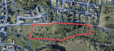 Projektområdet omfatter et areal på cirka 1,6 hektar, beliggende syd for Banestien og markeret med rød streg på vedlagte kort.