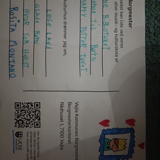 - Bedste børnebibliotek: Vi vil gerne skabe landets bedste bibliotek og musik- og kulturskole for børn og deres familie? Hvad synes du det skal indeholde?