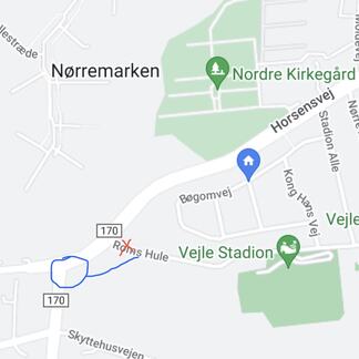 - Fra Horsensvej i retning mod centrum og ind mod Roms Hule